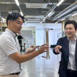 執行部と懇談いただいた後に、キャンパス近くの産学官共同による研究開発拠点「いとLab+」(いとらぼプラス)へ移動し、拠点に⼊居する本学発スタートアップ企業の株式会社JCCLのラボを視察されました。星野CTO/工学研究院教授よりこれまでの文部科学省等の支援による成果としてJCCLの技術の特徴について説明、謝辞を受けられた後、CO₂固定化の市場形成、活性化についての意見交換、ラボの視察を行いました。