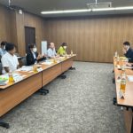 大橋キャンパスへ移動し、尾本芸術工学研究院長のほか、副研究院長らと意見交換を行いました。前身である九州芸術工科大学より受け継いでいる「技術の人間化」といった言葉を大切にした“デザイン”の理念についての説明を受けられ、特徴的な6つのコースについての紹介がありました。