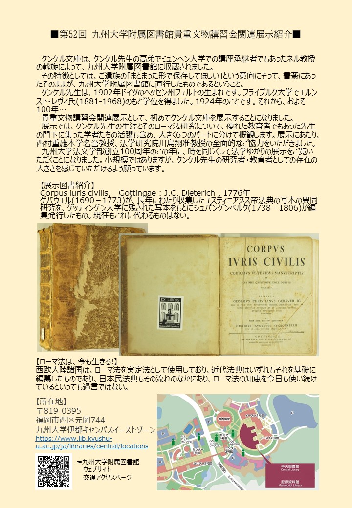 ■展示会「クンケル先生の書斎から ―遺文庫にみる そのローマ法研究―」