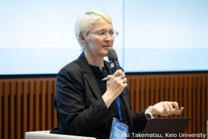 パネルディスカッションでは、本学許斐副理事が慶應義塾大学の土屋大洋国際担当理事、東北大学の植木俊哉国際担当理事とともに登壇しました。コロナ禍による制約を経験し、また、生成AI等の新しい技術により学修活動が変化する中で、大学がどのような役割を果たして課題に対処していくべきか、日本の大学をモデルとして闊達な議論が交わされました。許斐副理事からはキャンパスの国際化に向けた方策といった話題提供がなされました。会場からも積極的に質問が投げかけられ、全参加者にとって新たな知見や示唆を得られる有意義な時間となりました。