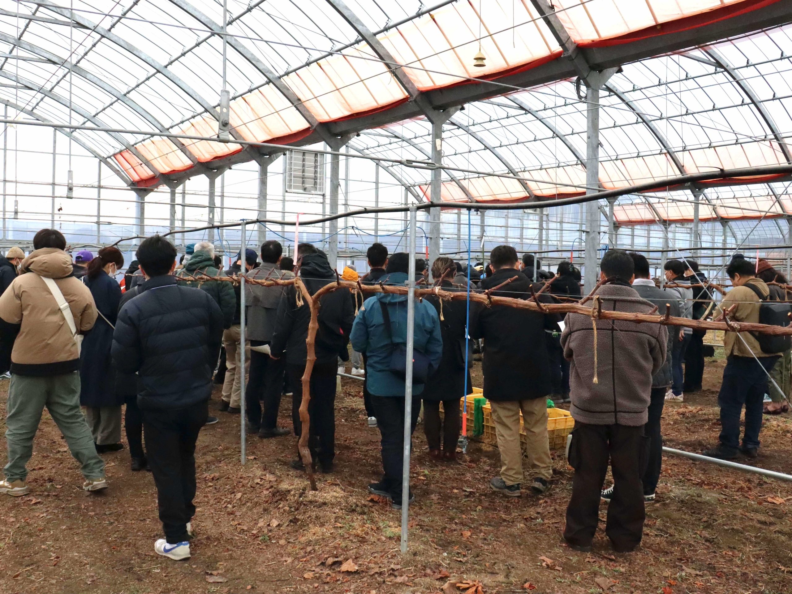 令和7年1月29日に、農学部附属農場において、ブドウ生産者団体の視察研修を受け入れました。