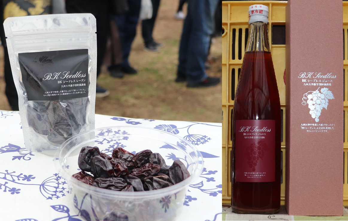 - 「BKシードレス」の レーズン(左)とストレートジュース(右)