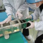 国立大学法人九州工業大学(以下、九工大)と国立大学法人九州大学(以下、九大)が共同で、超小型人工衛星「YOTSUBA-KULOVER」を開発いたしました。本プロジェクトは2022年1月に始動し、2024年3月に衛星の機体が完成、2025年2月に宇宙航空研究開発機構(JAXA)への引き渡しを行いました(下図)。その後、2025年9月15日(日本時間)にSpaceX社のFalcon9ロケット及び、Cygnus CRS2補給船によって国際宇宙ステーション(以下、ISS)へ輸送されました。2025年10月10日(日本時間)には、ISSの「きぼう」より宇宙空間へ放出される予定です。