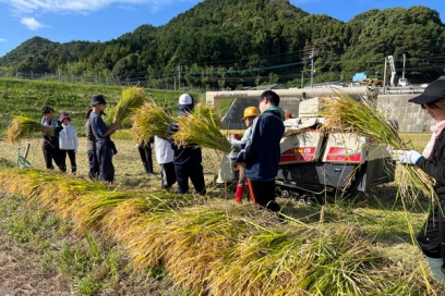 - Farm-to-table at Ito Campus! Students are harvesting newly grown rice at the Kyushu University farm.