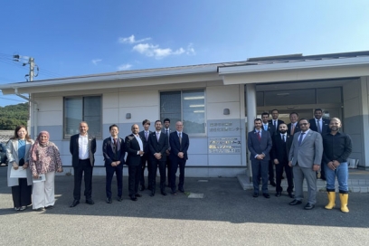 On October 27, the group visited the Aqua-Bioresource Innovation Center (ABRIC) in Karatsu, where Professor Kohei Ohta from the Faculty of Agriculture introduced research on the full-cycle aquaculture of “Karatsu Q-Saba,” smart aquaculture using ICT, and alternative feed development to reduce environmental impact. The delegation also toured the facility.