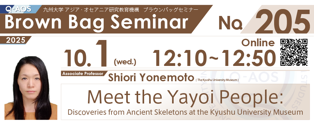Associate Professor Shiori Yonemoto (The Kyushu University Museum)The Q-AOS(*1) Brown Bag Seminar Series(*2) are starting every Wednesday lunch time