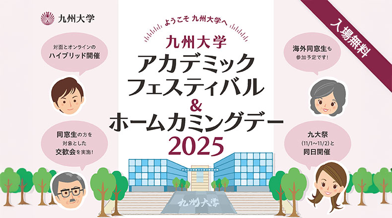 Welcome back, alumni!Welcome back, alumni!We're delighted to announce the Kyushu University Academic Festival & Homecoming Day 2025.A variety of event