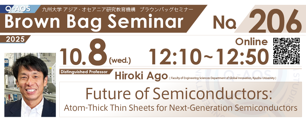 Distinguished Professor Hiroki Ago (Faculty of Engineering Sciences)The Q-AOS(*1) Brown Bag Seminar Series(*2) are starting every Wednesday lunch time