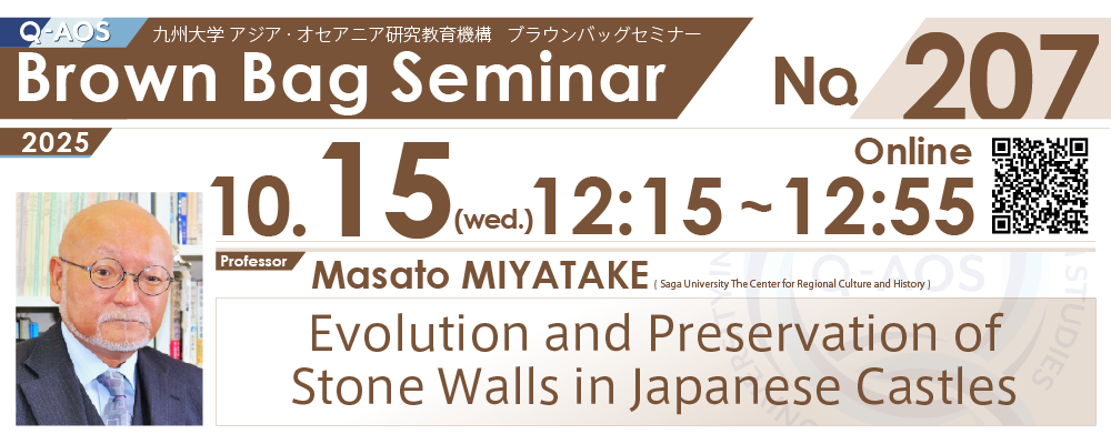 Professor Masato MIYATAKE (Saga University The Center for Regional Culture and History)The Q-AOS(*1) Brown Bag Seminar Series(*2) are starting every W