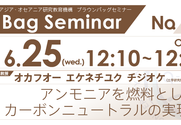 《6/25開催》 第192回アジア・オセアニア研究教育機構(Q-AOS)Brown Bag Seminar Series「アンモニアを燃料としてカーボンニュートラルの実現に貢献」