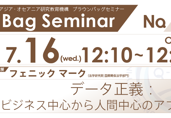 《7/16開催》第195回アジア・オセアニア研究教育機構(Q-AOS)Brown Bag Seminar Series「データ正義:ビジネス中心から人間中心のアプローチへ」