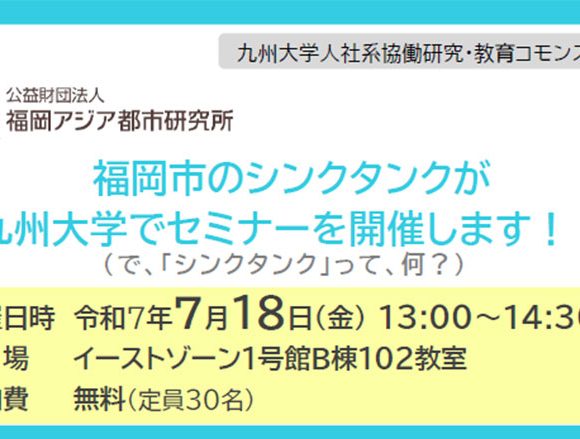 《7/18開催》学生向け「福岡市のシンクタンクが九州大学でセミナーを開催します!!」