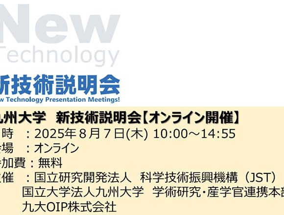 《8/7開催》九州大学 新技術説明会 【オンライン開催】